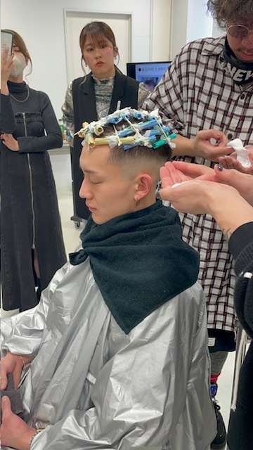 セミナーは、King KUNI氏のカット→門田氏のカット→KUNI氏パーマ→門田氏パーマ→パーマ2液→フィニッシュワーク→プレゼン・質疑応答と進んでいきます。