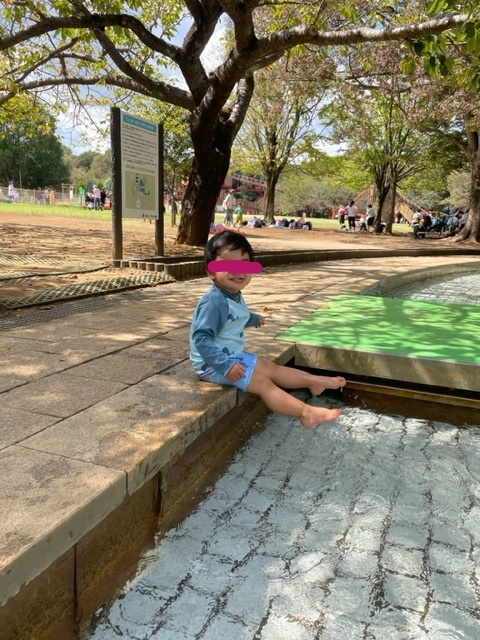 息子もまだおむつですので、がっつり入るのは我慢…水遊び大好きなんですけどね。今回は足だけちゃぷちゃぷ付けて水遊び気分を味わいました。(一応水しぶきで濡れてもいいように水着は着せています)できれば水遊び用おむつはOKにしてほしいなぁ…とは思いますが、決まりは決まりですからね。おむつが外れたら思いっきり水遊びさせてあげたいです。